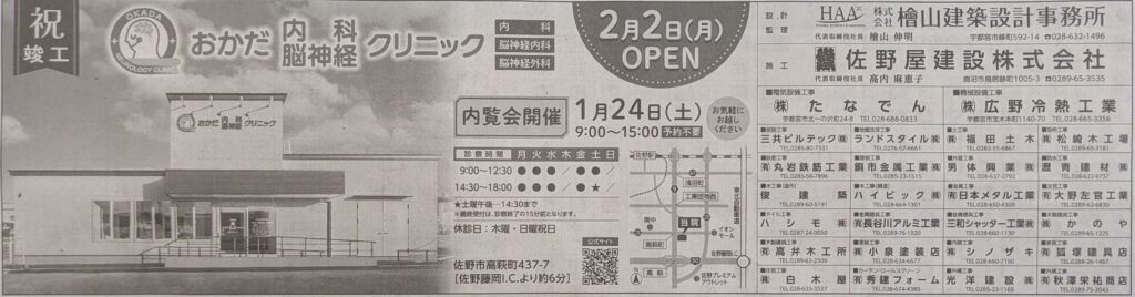 おかだ内科クリニック様の新築工事で、屋根工事を施工させていただきました。関係各位様には大変お世話になりました。(設計:株式会社檜山建築設計事務所様 建設会社:佐野屋建設株式会社様)