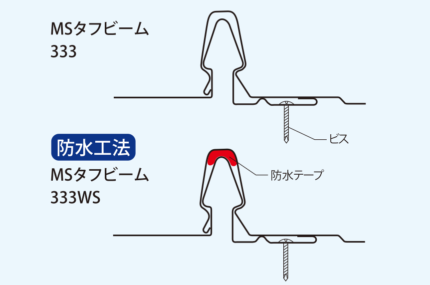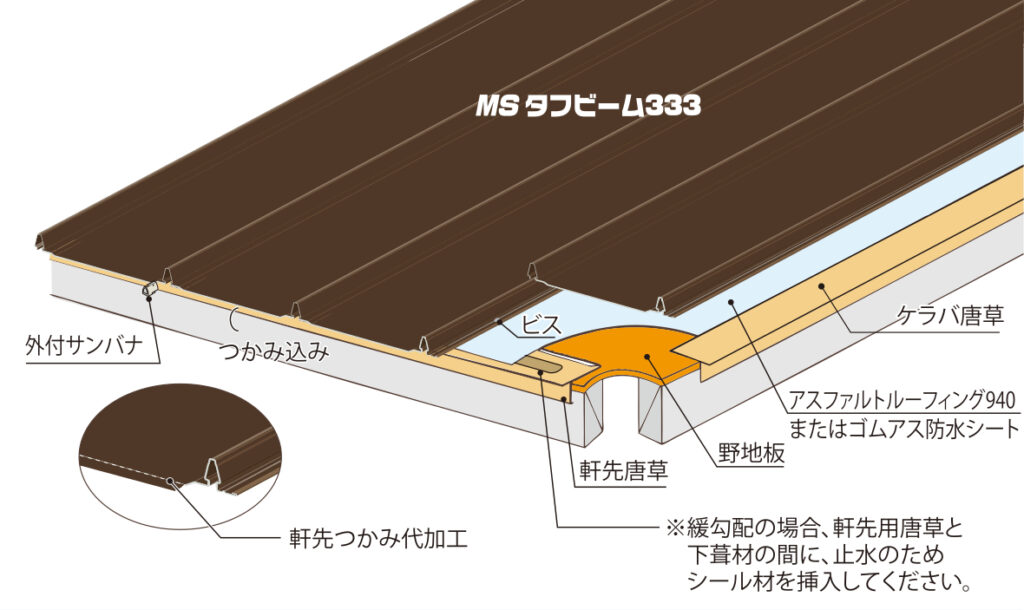 - 防水工法:高防水仕様として、かん合部に防水テープまたはシーリング材を充填することで、さらに水密性を高めます。