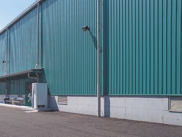 折板屋根の鋭角の断面形状と、縦のラインのコンビネーションを考えたデザインです。